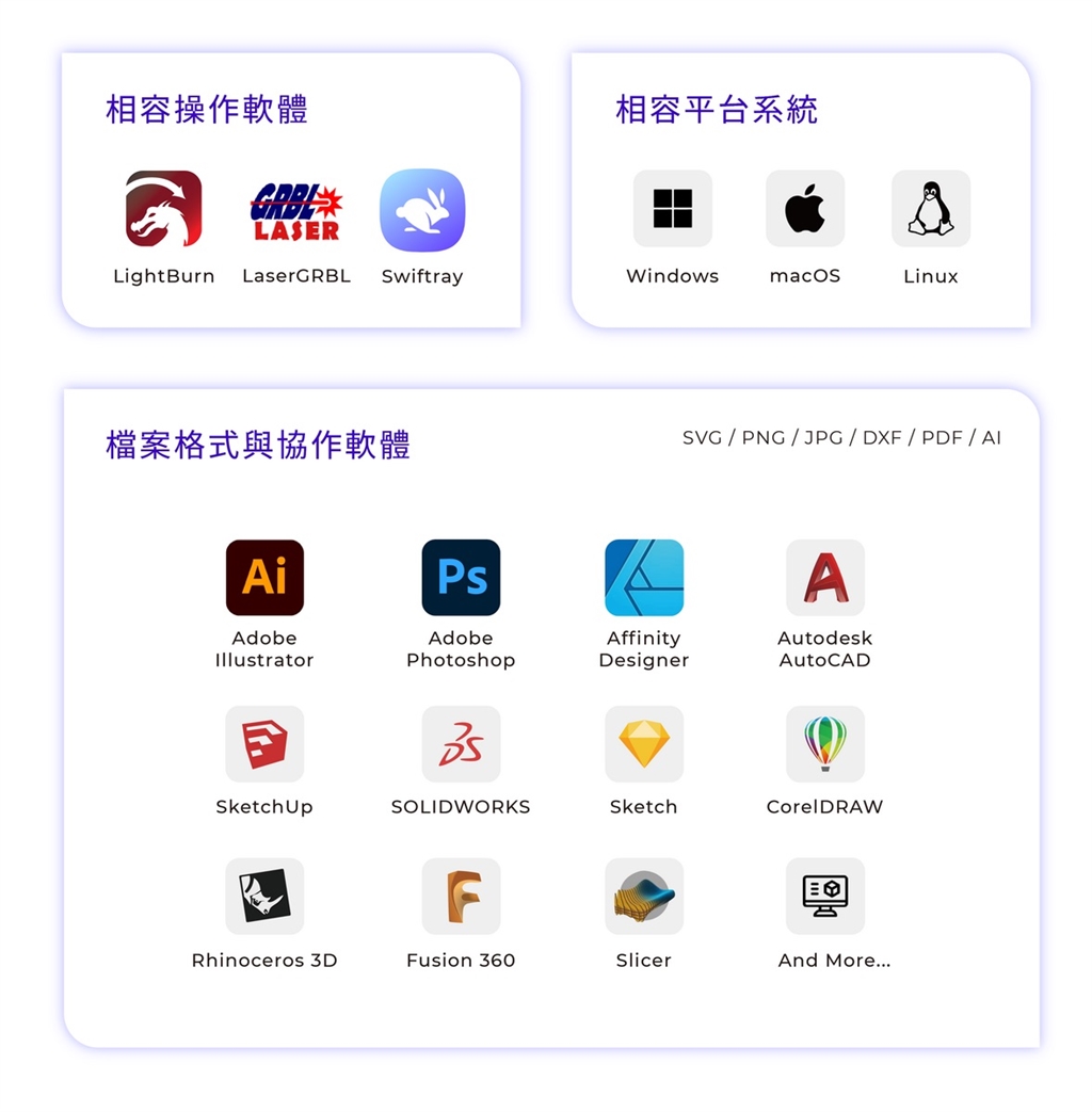 LightBurn / LaserGRBL / Swiftray |