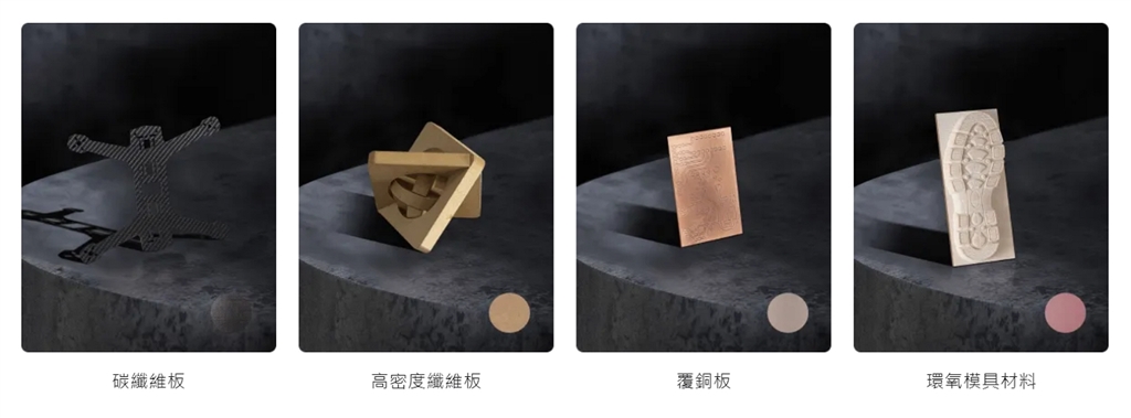 CNC性能提升同樣帶來更豐富的材料選擇。 200W CNC模組可以輕鬆完成硬木(櫸木、胡桃木)和玉石等硬質材料的精密加工。