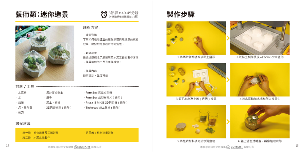 囤貨食物吃不完?馬鈴薯是你的好素材!將馬鈴薯切塊或黏土塑形,將黏土放上FormBox真空成型後,剪下底座、上蓋後將水泥粉和水倒入模具,再將植栽材料填充於水泥盆栽,依照喜好製作自己的迷你造景,在美化居家、辦公室療癒小物、送禮都非常適合!